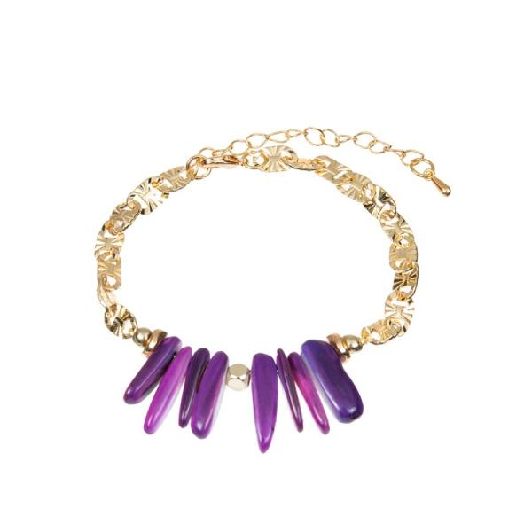 Designer Mystery Purple Shell Beaded Stone Adjustable Bracelet For Beach